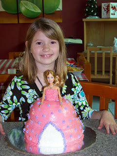 Kaitlyn turned 9 in December. She had a fun birthday party. We had it at our house and rented an inflatable bounce house. This is very popular here and is also pretty inexpensive. Kaitlyn wanted a Barbie cake so I attempted to make one for the first time. She was very happy with it. Of course we had to have a piƱata. It was a big hit.